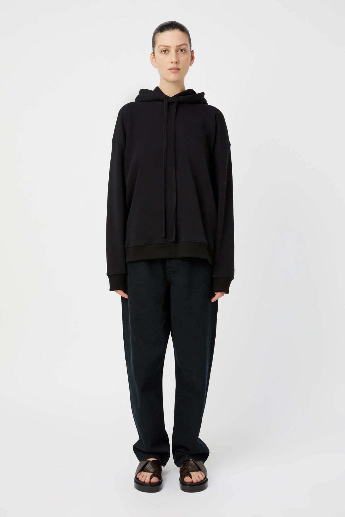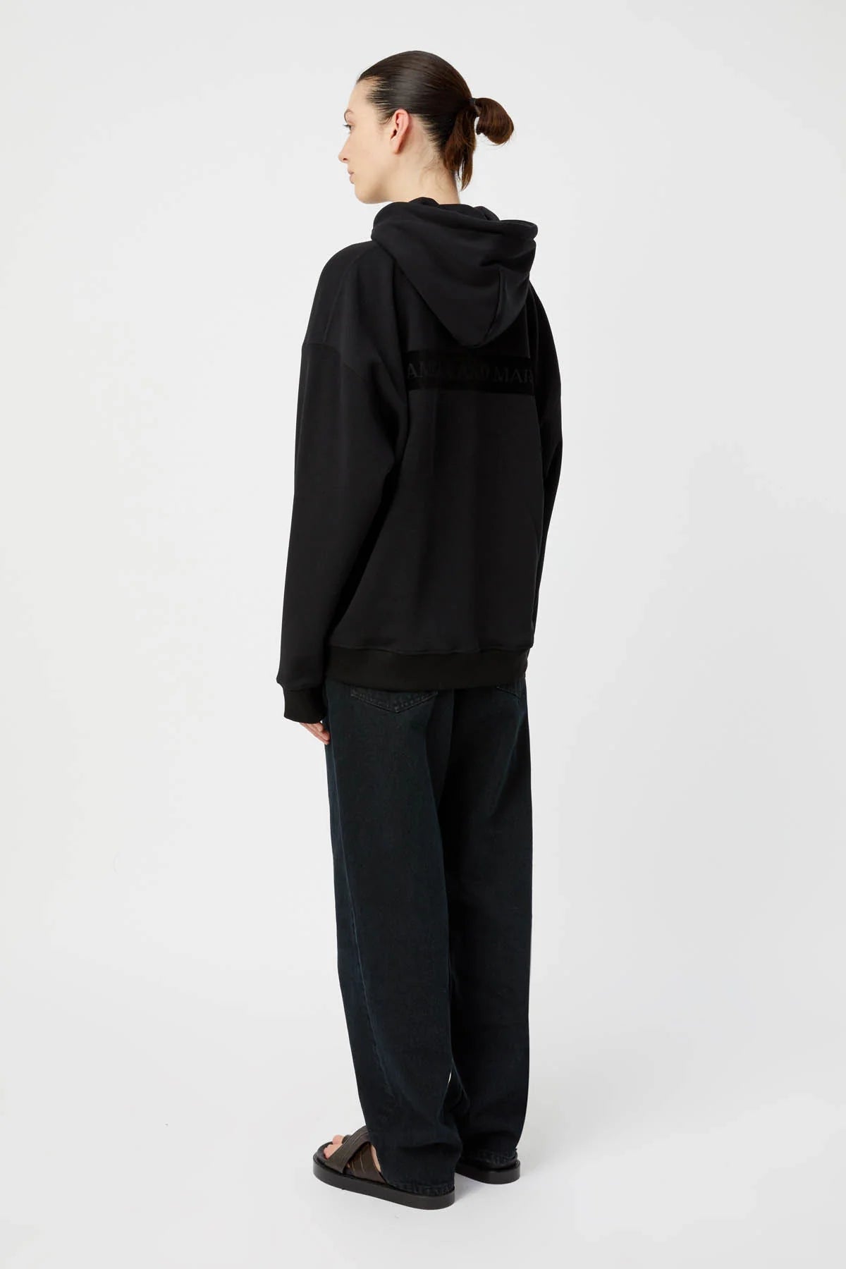 CAMILLA AND MARC Grid Flocking Logo Hoodie in Black.