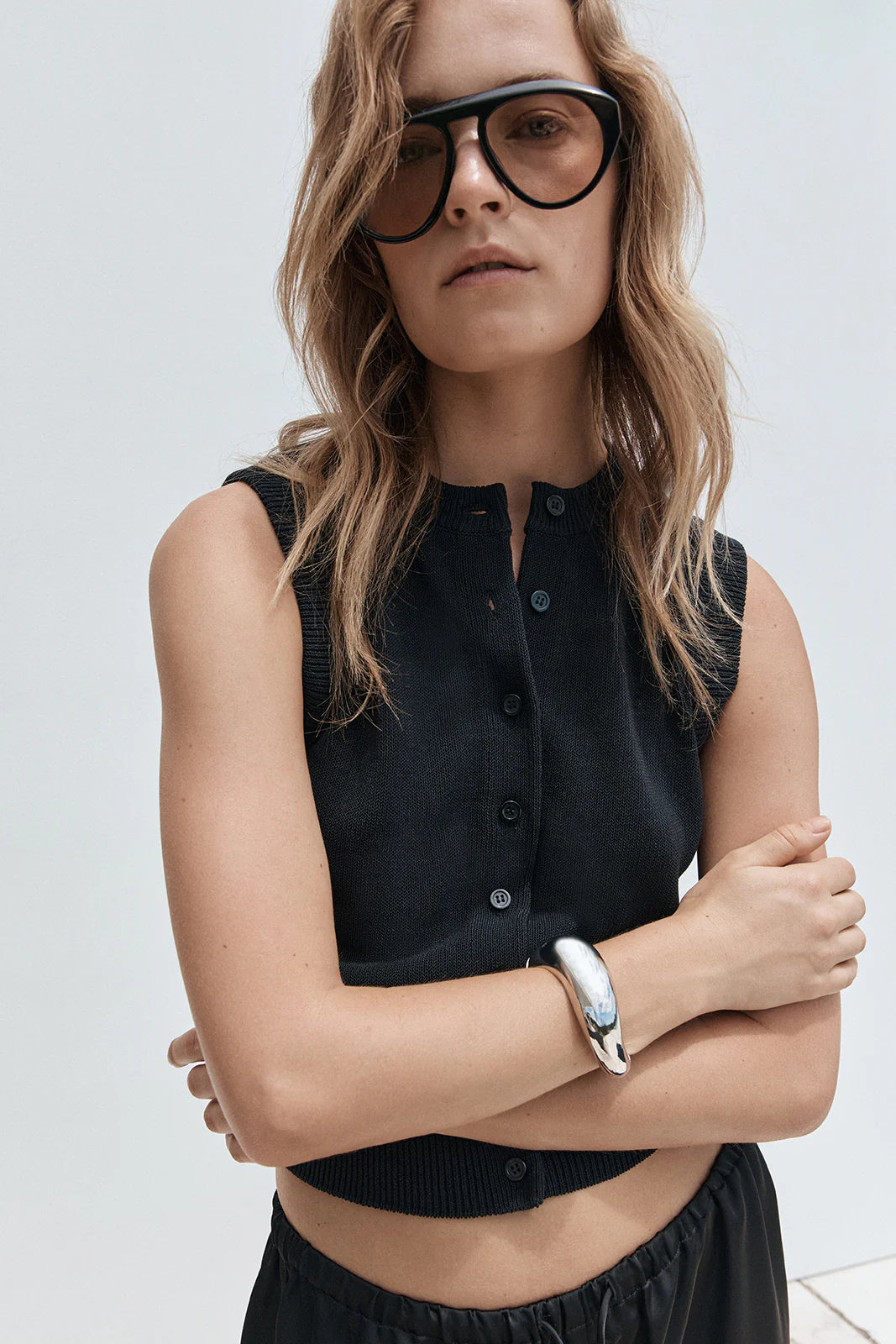 ELKA COLLECTIVE CLYDE KNIT VEST TOP - BLACK