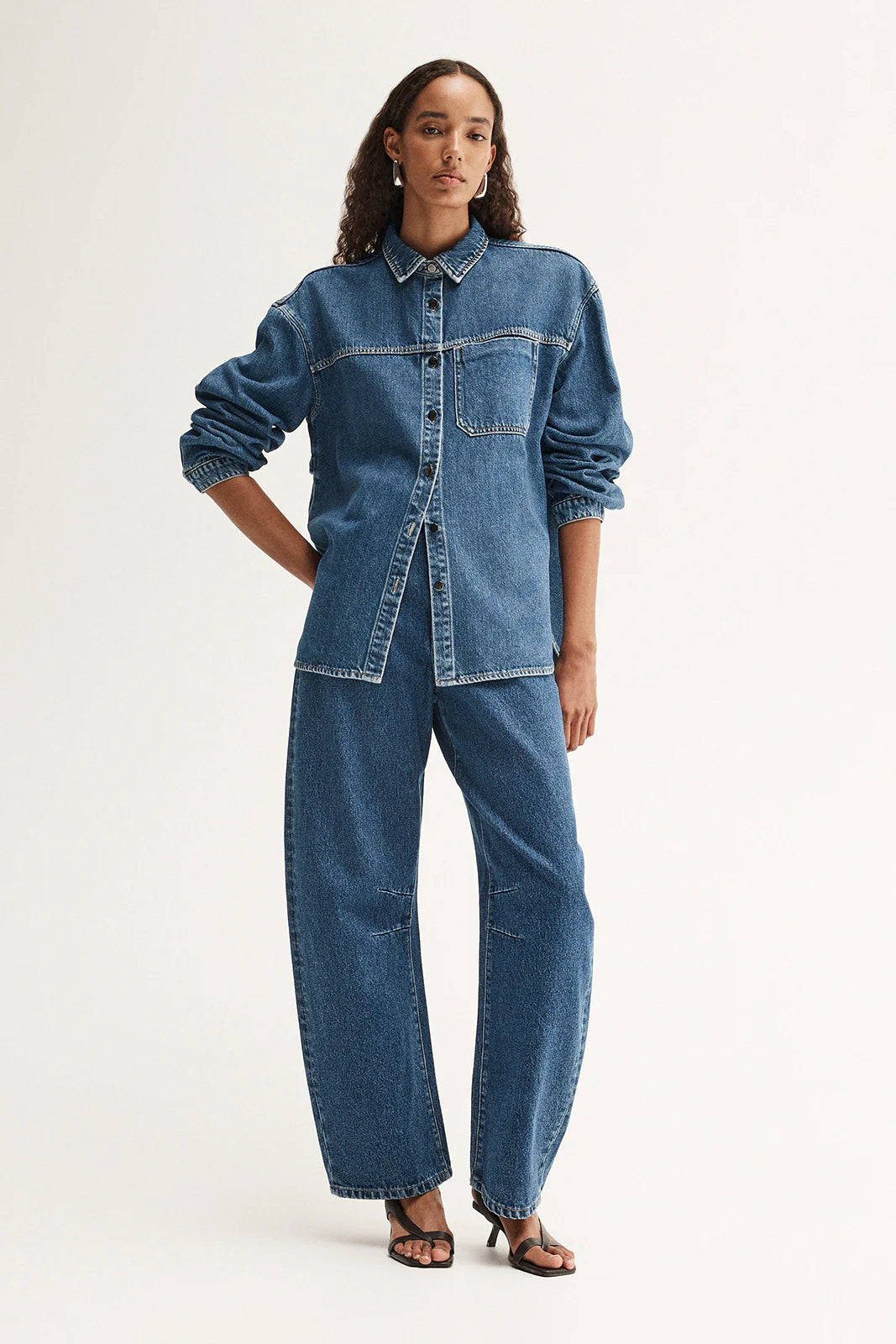 The Kennedy Denim Shirt is driven by a contemporary take on a classic design, with utility detailing and a relaxed silhouette. Offset the casual simplicity of this shirt with a tailored pant and strappy heels. This shirt is a versatile choice for seasonal transitions.