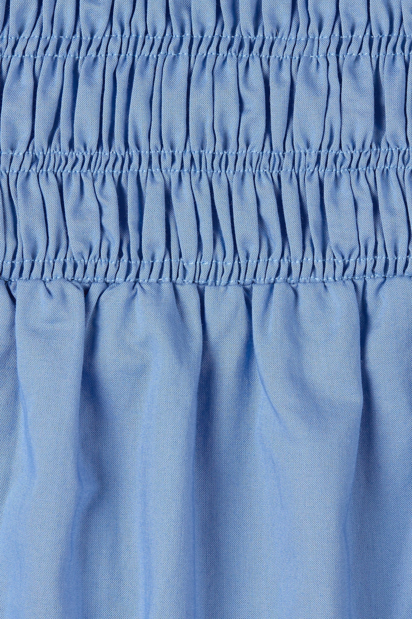 A vacation-inspired maxi dress, crafted from signature 100% cotton yarn-dyed in a cool ocean blue. It features a deep V-neckline at the front and back with an asymmetric elastic detail through the bodice for a cinched silhouette. From the waist, it flares into a softly gathered A-line skirt. Style with simple sandals for sun-drenched vacations.