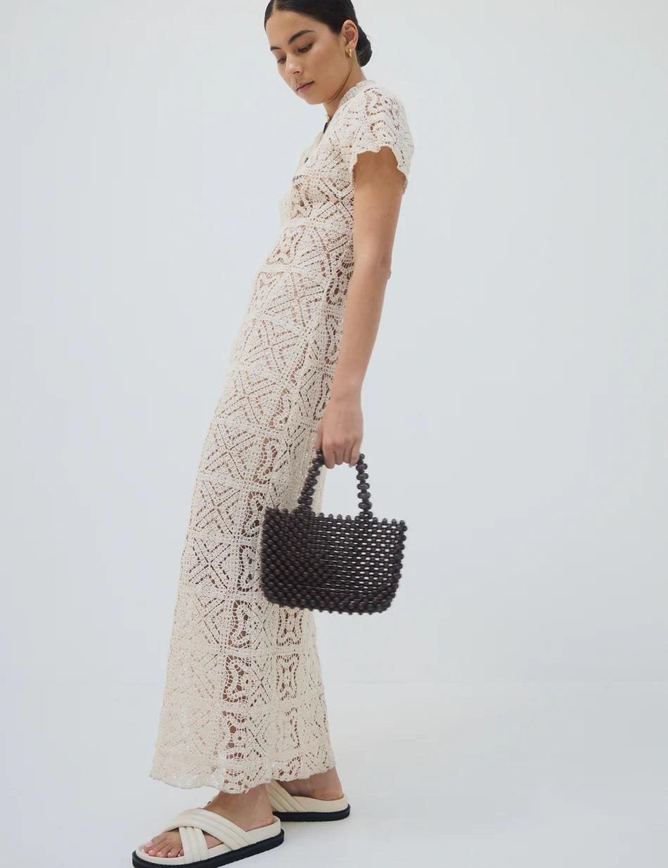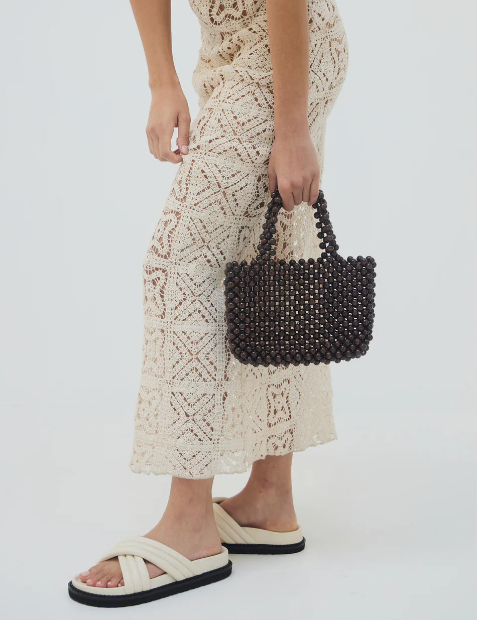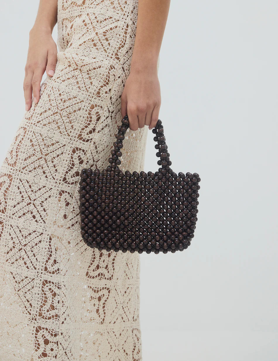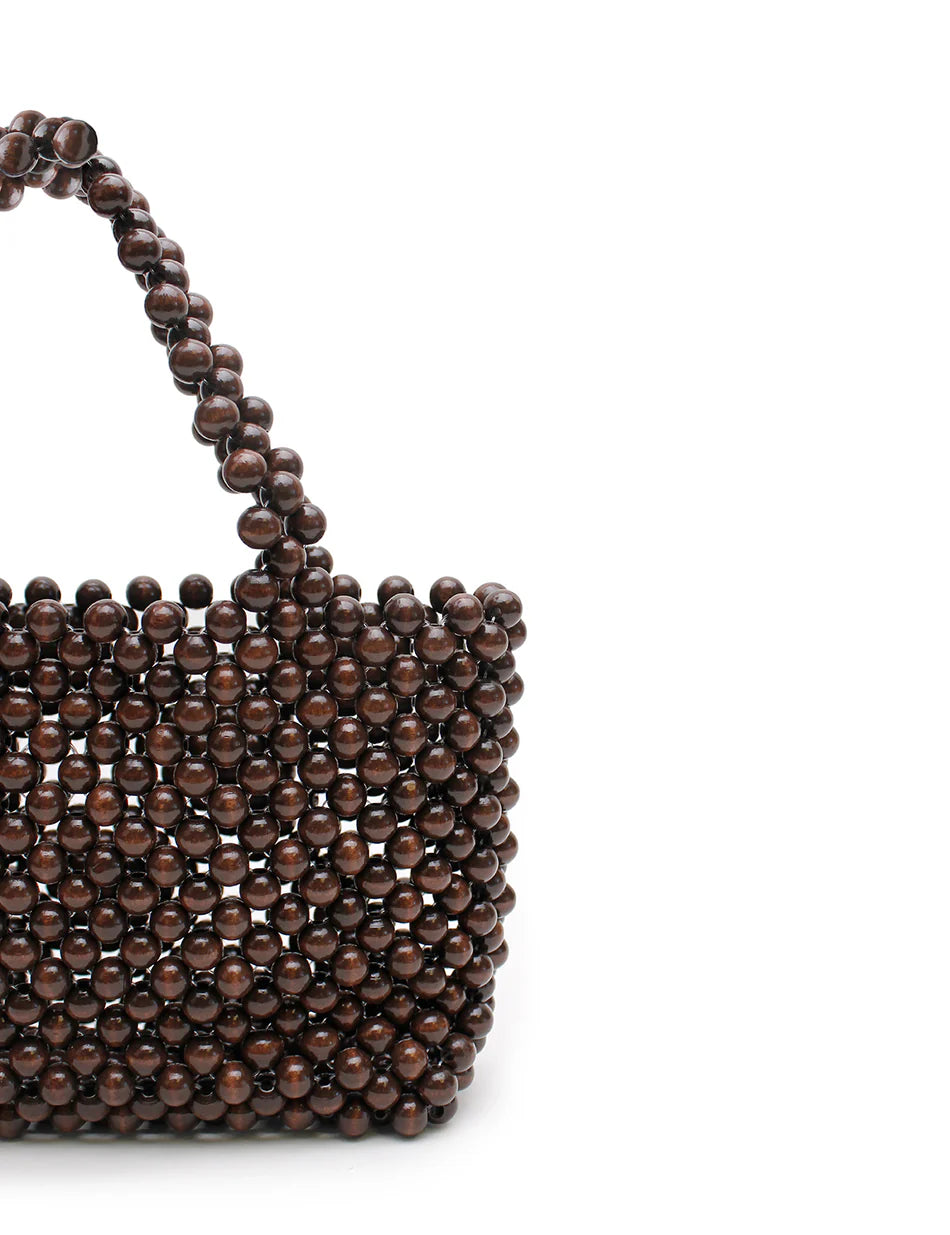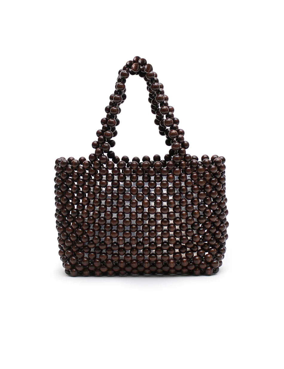 Handmade from maple wood this unique beaded bag adds texture and interest to any outfit.